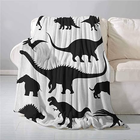Amazon 恐竜旅行毛布さまざまな黒恐竜シルエットジュラ紀進化絶滅捕食者動物を運ぶのは簡単毛布黒白 150x200 ブランケット 毛布 オンライン通販