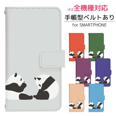 スマホケース手帳型 全機種対応 ベルトあり パンダシルエット カバー