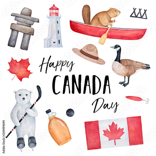 カナダの動物水彩画イラストセットhanddrawn デザインデコレーション