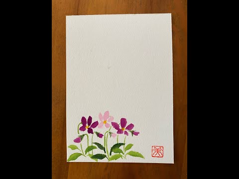 誰でも簡単に描けるハガキ絵 菫 すみれ 手書き 花 水彩画